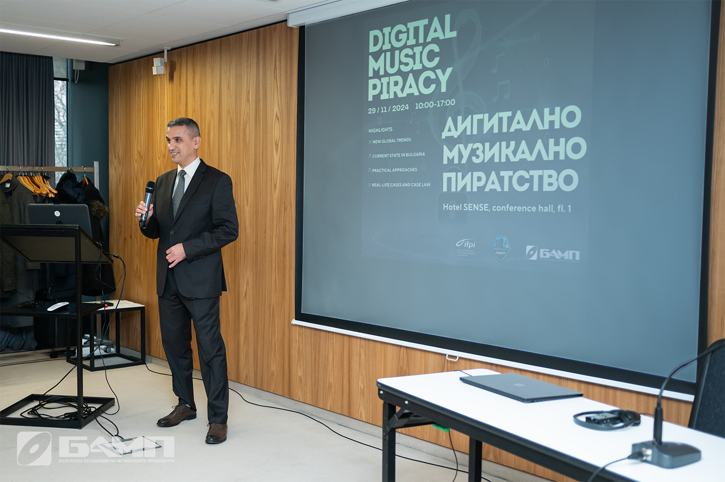 Представители на Международната федерация на звукозаписната индустрия (IFPI) и на Дирекция „Киберпрестъпност“ при ГДБОП-МВР обмениха опит по време на семинара „Дигитално музикално пиратство: нови тенденции и практически подходи“, организиран от БАМП. Семинарът се състоя на 29 ноември 2024 г., в хотел Sense в София.